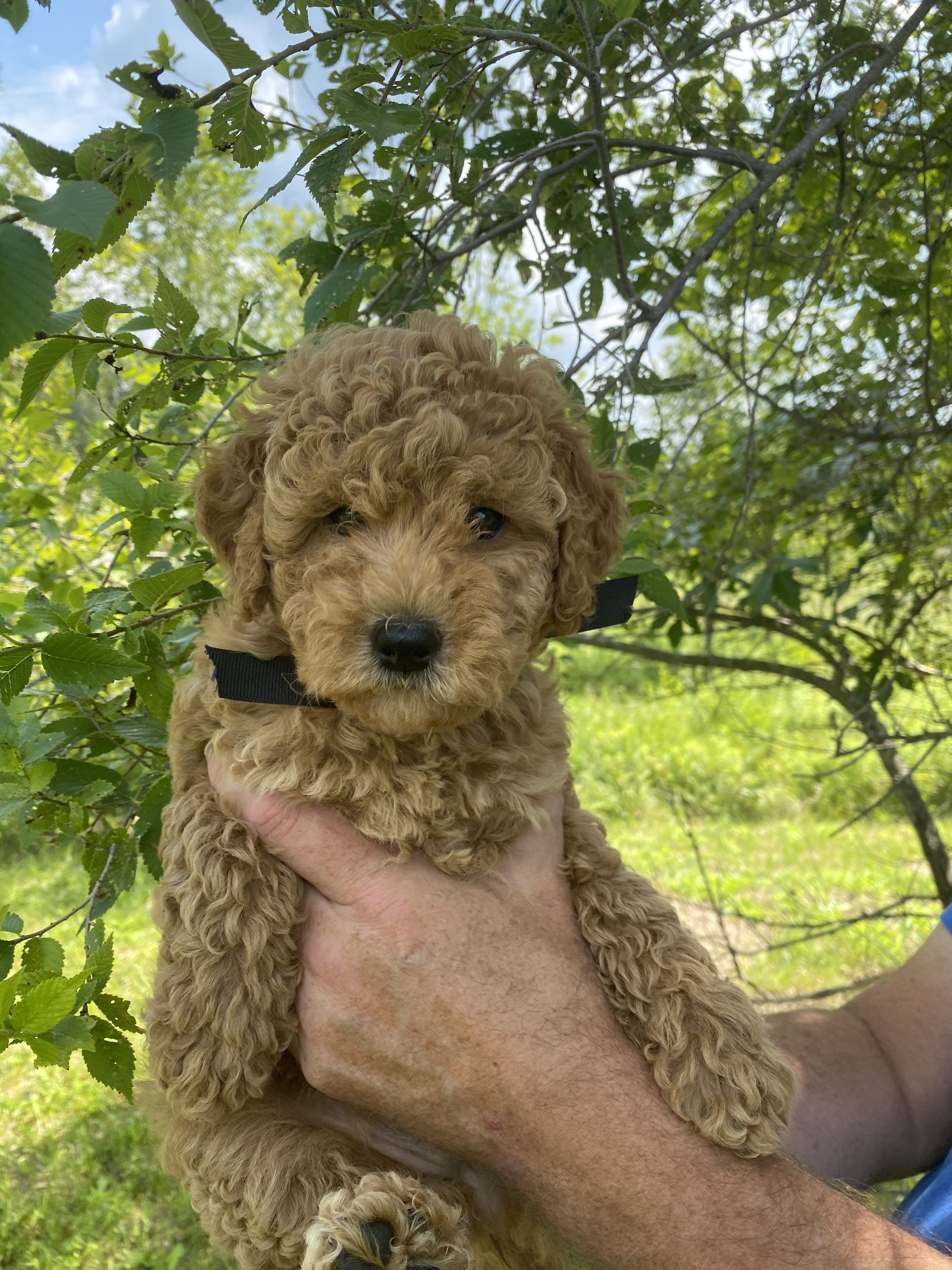 We have two adorable puppies available. Both girls are F1B mini-goldendoodles, and both of them are beautiful and playful!