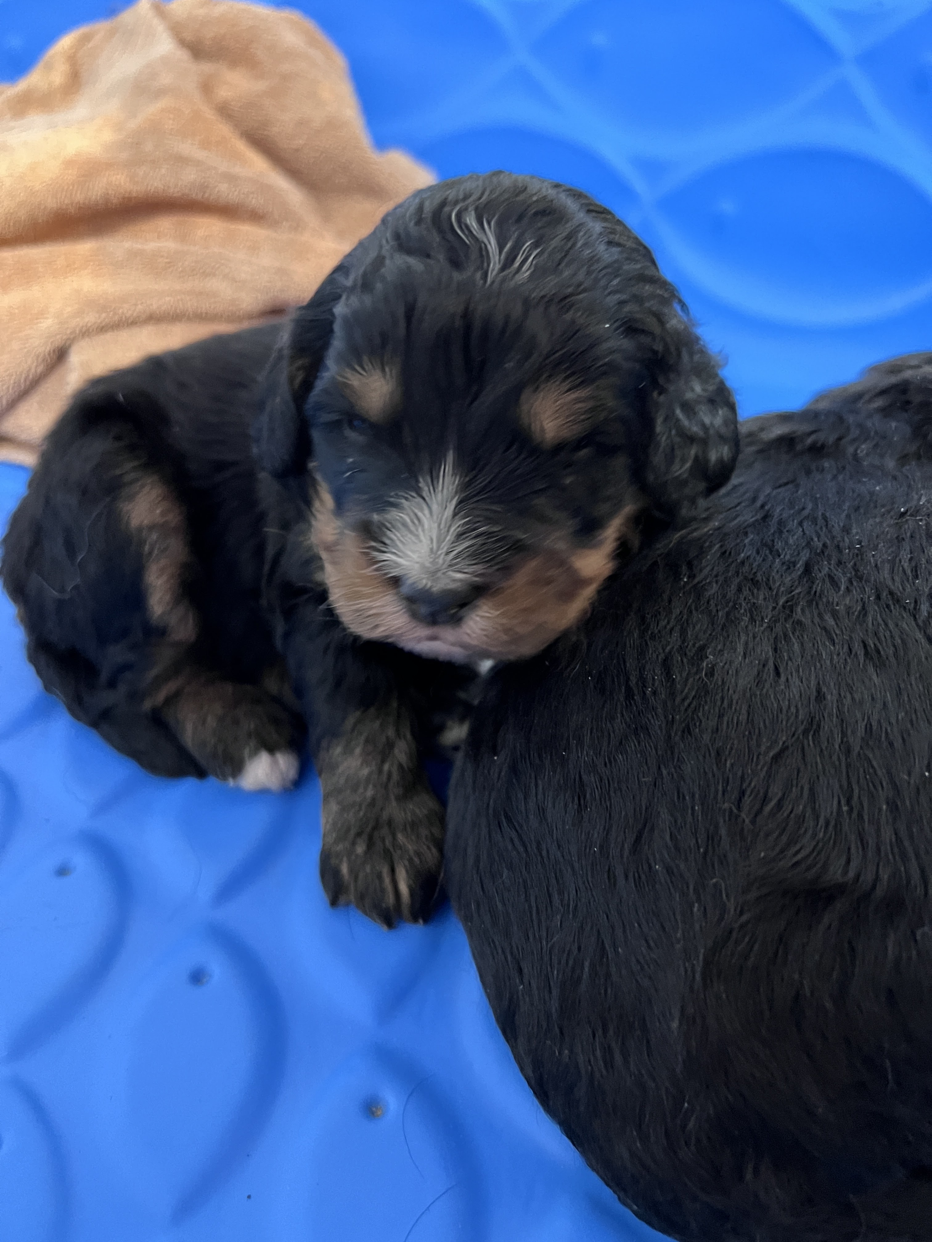 We have 4 Bernedoodle puppies (2 boys and 2 girls). One of the girls (Miss Purple) has been reserved. Let me know if you would like to come and play with the puppies, and see how they would fit into your family!